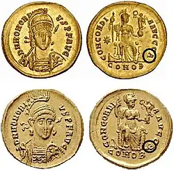 - ↑ Andreas Urs Sommer: Die Münzen des byzantinischen Reiches 491–1453. Mit einem Anhang: die Münzen des Kaiserreichs von Trapezunt. Zweite, strark vermehrte und revidierte Auflage 2023. Battenberg Verlag, Regenstauf 2023, ISBN 978-3-86646-240-3, Kapitel 9.