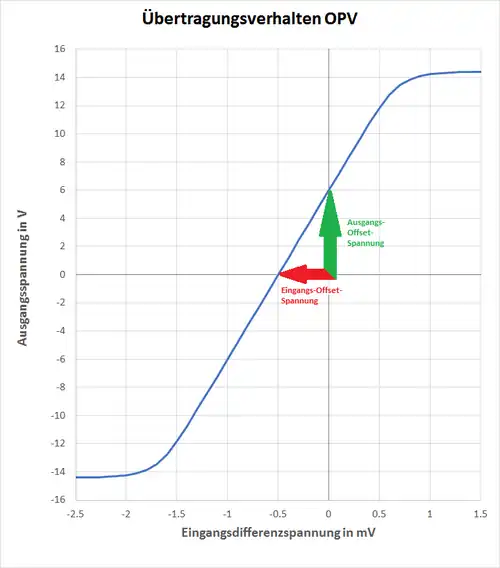 Die Offset-Spannung ist eine Kenngröße für die additive systematische Abweichung des Kennlinienverlaufs eines elektrischen Gerätes vom idealerweise zu erwartenden Verlauf. Sie wird hier lediglich als Eingangs-Offset-Spannung von Operationsverstärkern behandelt. Bei diesen ist sie die erforderliche Differenzeingangsspannung, die eine Ausgangsspannung null erzeugt.