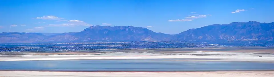 Im frühen Mesozoikum bildete sich während der Trias mit dem Thaynes-Kalkstein eine letzte Meeresablagerung, bevor die Region angehoben wurde. Die frühe triassische Moenkopi-Formation ist ein Sandstein mit dünnen Kalkschichten, die sich ausbreiten, wenn sich das Meer über Watten erstreckt. Die dicksten Sedimente des Jura befinden sich östlich von Ogden im sogenannten Devil's Slide und Marysvale.[7] Im Jungpleistozän lag das Stadtgebiet Ogdens unterhalb der Wasserlinie des Lake Bonneville, der vor rund 16.000 Jahren mit 52.000 km² seine größte Ausdehnung erreichte. Als der natürliche Damm dieses Sees vor 14.500 Jahren brach, löste das die Bonneville-Flut aus, bei der große Teile des nordwestlichen Gebietes der heutigen USA überflutet wurden.[8] Der heutige Grundwasserspiegel in Ogden wird durch den Pineview-Damm bestimmt, der wiederum durch den Zufluss aus 146 Quellen im Ogden-Valley gefüllt wird.[9]