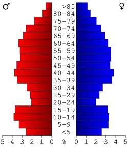 23,5 Prozent der Bevölkerung waren unter 18 Jahre alt. 6,4 Prozent zwischen 18 und 24 Jahre, 24,4 Prozent zwischen 25 und 44 Jahre, 27,0 Prozent zwischen 45 und 64 Jahre und 18,8 Prozent waren 65 Jahre oder älter. Das Durchschnittsalter betrug 42 Jahre. Auf 100 weibliche Personen kamen 98,4 männliche Personen. Auf 100 Frauen im Alter von 18 Jahren und darüber kamen statistisch 95,5 Männer.