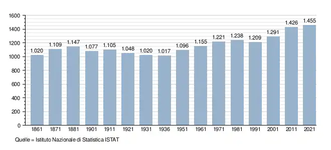 - ↑ Bilancio demografico e popolazione residente per sesso al 31 dicembre 2024. ISTAT. (Bevölkerungsstatistiken des Istituto Nazionale di Statistica, Stand 31. Dezember 2024).