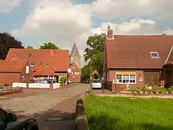 Der Ort hat sich seine dörfliche Prägung erhalten. L 68 und K 25 halten den Durchgangsverkehr von der eigentlichen Dorfstraße fern. Der im Zentrum gelegene Dorfplatz, auf dem ehemals das Kriegerdenkmal stand, wird geprägt von altem Baumbestand: vier als Kopfbäume geschnittenen Linden, eine weitere Linde mit normaler beschnittener Krone und zwei hochstämmige Rotdorne. Der Platz erfüllt weiterhin Verkehrsfunktionen. Die Fahrspuren sind mit Natursteinen gepflastert, die Parkflächen mit rotem Pflasterklinker. Für die Fassaden der angrenzenden Gebäude wurden einheitlich rote Backsteine bzw. rote Klinkerverblendung verwendet.