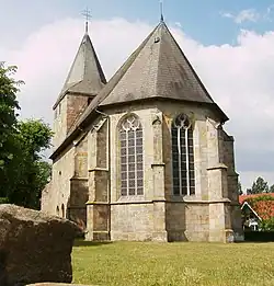 Die Kirche des Ortes liegt untypischerweise nicht direkt am Platz, sondern in zweiter Reihe.