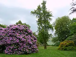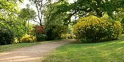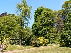 An Baumarten sind erwähnenswert Judasbaum, Mammutbaum, Tupelobaum, Amberbaum, Buchen, Schwedische Mehlbeere, Perückenstrauch, Essigbaum, Götterbaum, und Magnolien. An seltenen Bäumen kommen im Park Ginkgobaum, Zaubernuss, Fächer-Ahorn, Kaukasische Flügelnuss und Taschentuchbaum vor.