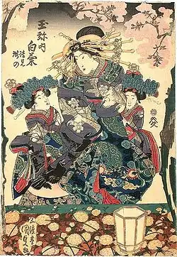 Ab ca. 1770 wurden schließlich unter dem Begriff oiran die drei teuersten Klassen der Prostituierten des Yoshiwara zusammengefasst. An erster Stelle standen dabei die yobidashi („nur auf Vorbestellung“). Diese mussten sich nicht im harimise, dem Ausstellungsraum, den Freiern zur Schau stellen. Die Freier mussten sie über einen Vermittler für die Dauer von mindestens einem halben Tag bestellen und wurden dann in Teehäusern empfangen, die über geeignete Räumlichkeiten für die Ausübung der sexuellen Dienstleistungen verfügten. Zum Gefolge einer yobidashi gehörten regelmäßig zwei kamuro und mindestens zwei shinzō (新造), jüngere Prostituierte, die als Bedienstete fungierten. An zweiter Stelle standen die chūsan („drei bu pro Tag“). Sie mussten sich wie alle anderen Frauen zweimal am Tag den Freiern im harimise präsentieren, hatten jedoch das Privileg, die Kunden im Teehaus empfangen zu dürfen. An dritter Stelle standen die tsukemawashi („auf Tritt und Schritt folgen“), die sich ebenfalls im harimise vorzustellen und die Freier in separierten Räumen des Bordells zu empfangen hatten.[4] Nach Stein[5] betrugen die Preise für diese drei Klassen umgerechnet auf das Jahr 1997 zwischen 150,- und 375,- DM (ca. 77,- bis 192,- €) pro Tag (ohne Vermittlungsgebühren, Kosten für Verpflegung, Unterhaltung und Geschenke für die Frauen und deren Gefolge). Im Vergleich dazu war die billigste sexuelle Dienstleistung im Yoshiwara für umgerechnet 5,50 DM (2,81 €) zu haben (in den illegalen Einrichtungen anderer Stadtviertel und auf dem Straßenstrich kostete einfacher Sex zum Teil gerade den Gegenwert einer schlichten Mahlzeit).