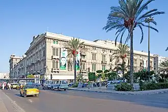 Es wurde nach Entwürfen des italienischen Architekten Luigi Piattoli im Jahre 1887 fertiggestellt. Im Erdgeschoss befinden sich die Geschäftsräume und darüber Wohnungen. Im umbauten Areal befinden sich große Innenhöfe. Das Geschäftsleben des Urabi-Platzes findet u. a. in der Gallery Monferrato statt.[2][3][4][5] Die Fassade soll sich laut Khalil in einem guten Zustand befinden, nicht so die Innenhöfe mit den Geschäften.[6]
