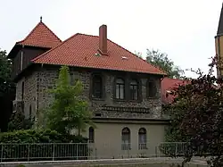 Der heutige, zweigeschossige Bau entstand – bis auf den 1859 erbauten Teil – 1905 und vereint Elemente, wie sie in der Burg Dankwarderode und im Braunschweiger Dom wieder zu finden sind.[1] Es handelt sich um ein massives Gebäude aus Bruchstein, das aufgrund der verspielten Architektur mit einem auffälligen Turm wie eine kleine Burg aussieht, was dem Ganzen – in Verbindung mit dem nahe gelegenen östlichen Okerring – den Spitznamen „Okerburg“ eintrug. Das Gebäude wurde mehrfach umgebaut und im Zweiten Weltkrieg beschädigt, wobei Wandmalereien zerstört wurden.[2]