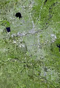 Es gibt zwei verschiedene Definitionen der Stadtgliederung: Politisch ist Oklahoma City in acht Wahlbezirke eingeteilt (siehe unten), deren Grenzen flexibel sind, da sie vor jeder Wahl der aktuellen Bevölkerungsstruktur angepasst werden.[24] Zum anderen kann die Stadt in sechs Regionen mit festen Grenzen gegliedert werden: den Nordwesten (NW), den Nordosten (NE), das Zentrum (CC), den Südwesten (SW), den Süden (S) und den Südosten (SE). An dieser Definition orientieren sich auch die Straßennamen.[25]