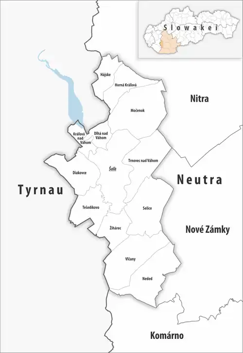 Der Okres Šaľa ist ein Verwaltungsgebiet im Süden der Slowakei mit 54.110 Einwohnern (2004, 2001 waren es 52.718, davon 33.435/61,9 % slowakisch und 19.283/35,7 % ungarisch) und einer Fläche von 356 km².