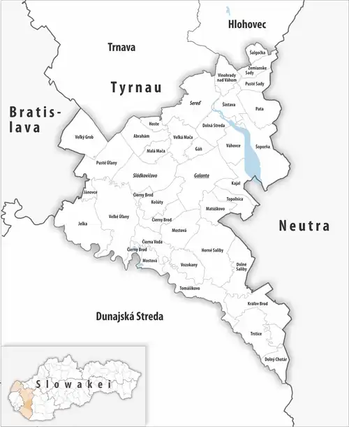 In dem Artikel Denkmalgeschützte Objekte im Okres Galanta findet man Informationen über die vom slowakischen Denkmalamt geschützten Objekte im Okres.