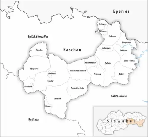 Gelnica ist ein Okres (Verwaltungseinheit) in der Ostslowakei mit 31.787 Einwohnern (31. Dezember 2024) und einer Fläche von 584 km².