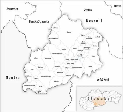 Der Okres Krupina (deutsch Bezirk/landkreis Karpfen) ist eine Verwaltungseinheit in der Mittelslowakei mit 21.209 Einwohnern (Stand 31. Dezember 2024) und einer Fläche von 585 km².