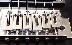 Bei E-Gitarren ist dies durch die „Reiter“ möglich, die für jede Saite einzeln verstellbar sind. Sie werden von einer Schraube festgehalten, wodurch man sie durch ein Anziehen der Schraube heranziehen kann (das entspricht dem Verlängern der Mensur), oder durch ein Lockern der Schraube weiter vom Haltepunkt entfernen kann (das entspricht dem Verkürzen der Mensur).