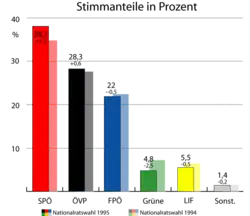 - ↑ Nationalratswahl vom 17. Dezember 1995 unter Berücksichtigung der Wiederholungswahl vom 13. Oktober 1996. In: bmi.gv.at. Abgerufen am 28. August 2018.