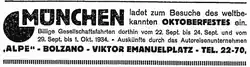 - „Anlässlich des diesjährigen Oktoberfestes in München wird für die Zeit vom 19. September bis mit 12. Oktober auf dem Festplatze ein Postamt nebst Telegraphenanstalt mit Telephonbetrieb und öffentlicher Telephonstelle eingerichtet. Dasselbe hat sich mit der Verabfolgung von Postwertzeichen und Telephonbilleten, Annahme und Abgabe von Briefpostsendungen sowie der Annahme von Telegrammen zu befassen und für den öffentlichen Verkehr in der Zeit von 8 Uhr morgens bis 8 Uhr abends geöffnet zu sein.“[23]