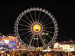 Ein Riesenrad wurde erstmals 1880 aufgestellt und hatte zu diesem Zeitpunkt eine Höhe von 12 Metern. Seit 1979 zählt Willenborgs Riesenrad mit einer Höhe von 48 Metern zu den bekanntesten Attraktionen und bietet Fahrgästen einen Blick über die Festwiese. Der Schausteller ist auf der Wiesn seit den 1930er Jahren regelmäßig mit unterschiedlichsten Fahrgeschäften vertreten, seit 1960 erstmals mit einem stählernen Riesenrad.[59]