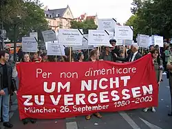 - ↑ DGB-Jugend München: 40 Jahre Oktoberfestattentat: Geschichte des Gedenkens. erinnernheißtkaempfen.de