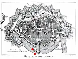 - Wilhelm Brehmer: Beiträge zu einer Baugeschichte Lübecks – 5. Die Befestigungswerke Lübecks, in: Zeitschrift des Vereins für Lübeckische Geschichte und Altertumskunde Band 7, Heft 3, S. 241 ff. Verlag Edmund Schmersahl Nachfolger, Lübeck 1898