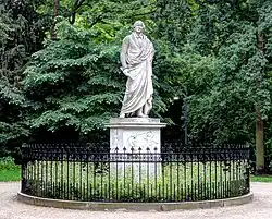 Während Denkmale vor dem 19. Jahrhundert überwiegend dem Ruhm der Herrscher dienen sollten, entstanden in den Parks und auf den Plätzen der deutschen Bürgerstädte erst nach etwa 1820 Standbilder; meist von Künstlern, Dichtern, Reformatoren oder Gelehrten, die so den Bürgern als nationale oder lokale Vorbilder nahegebracht wurden und zur Identitätsbildung der Gemeinwesen beitrugen. In der Tugendskala des 19. Jahrhunderts hatten Wissenschaft und Bildung einen hohen Stellenwert bekommen.