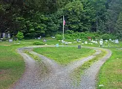 Der Friedhof befindet sich auf einer rechteckigen fünf Acre (etwa zwei Hektar) großen Parzelle im westlichen Bereich des Ortes, südlich der Eagle Valley Road und westlich der New York State Route 17. Das Gelände des Friedhofs fällt nach Westen zu einem Wäldchen hin ab, im östlichen Bereich liegen auf einer trommelförmigen Anhöhe, etwa sechs Meter erhöht, an der östlichen Begrenzung des Friedhofes die Gräber der Familie Sloat. Der älteste der 30 Grabsteine hier stammt aus dem Jahr 1781 und erinnert an John Sloat, die weiteren stammen aus der Zeit nach 1838.[1] Eine geschotterte Zufahrt führt von der Eagle Valley Road zur nordöstlichen Ecke des Friedhofes und zunächst zu einem Ringweg, an dem die Gräber der Familie Sloat liegen. Weiter westlich in der Nähe der jüngeren Gräber besteht ein weiterer Ringweg, der über einen unbefestigten Weg mit dem Ende der Richards Road verbunden ist und so den einzigen weiteren öffentlichen Zugang zum Friedhof darstellt. Drei Baumgruppen sind auf dem ansonsten offenen Grundstück verteilt.