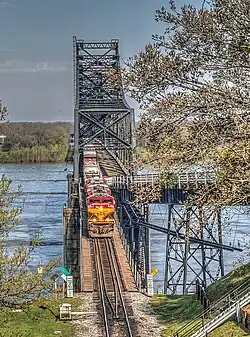 Bis zum Bau der Brücke verband eine Eisenbahnfähre die Strecken Meridian–Vicksburg der Alabama and Vicksburg Railroad und Delta–Lorraine der Vicksburg, Shreveport and Pacific Railway. Die beiden Eisenbahngesellschaften waren Teil des amerikanischen Eisenbahn-Investments des Bankiers Frédéric Emile Baron d’Erlanger. Die Emile Erlanger & Co. verpachtete die Stecken ab 1926 an die Yazoo and Mississippi Valley Railroad (Tochtergesellschaft der Illinois Central Railroad), die die Eisenbahnfähre durch eine Brücke ersetzen wollte, deren Verkehrsaufkommen bei rund 100.000 Eisenbahnwagen jährlich lag.[1]