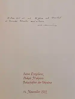 - ↑ a b c Margit Hufnagel: Oleksij Makejew soll künftig die ukrainischen Interessen wahren. In: Augsburger Allgemeine. 29. August 2022, abgerufen am 30. August 2022.