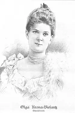 Olga Krona, geborene Olga Johanna Marie Kowala, verheiratete Olga Biesantz, auch Olga Biesantz-Krona (19. Februar 1873 in Groß-Wartenberg7. Juli 1951 in Gausbach[1][2]) war eine Theaterschauspielerin.