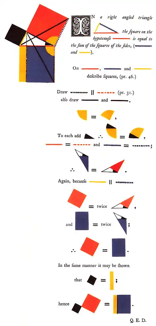 - ↑ Oliver Byrne: The first six books of The Elements of Euclid. in which coloured diagrams and symbols are used instead of letters for the greater ease of learners. William Pickering, London 1847, S. 47–48 (Verschiedene Nachdrucke verfügbar).