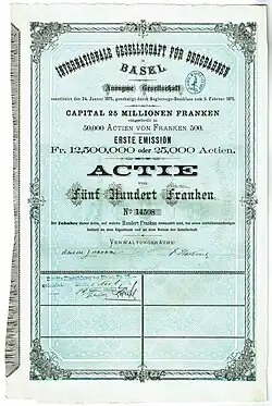 1873 beteiligte sich Zschokke an der Gründung der Internationalen Gesellschaft für Bergbahnen. Deren Zweck war es, Konzessionen zur Erstellung von Bergbahnen zu erwerben, sowie die Ausbeutung der von Niklaus Riggenbach und Olivier Zschokke erworbenen Patente. Durch Überschuldung wurde die Gesellschaft bereits 1875 illiquide. Nach mehreren Rettungsversuchen ging sie am 19. Mai 1876 in Liquidation, die erst am 15. September 1902 mit dem vollständigen Verlust des Aktienkapitals abgeschlossen war.