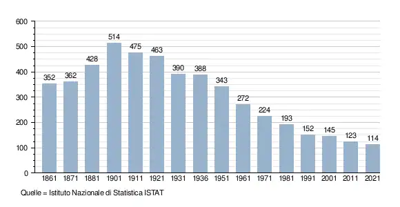 - ↑ Bilancio demografico e popolazione residente per sesso al 31 dicembre 2024. ISTAT. (Bevölkerungsstatistiken des Istituto Nazionale di Statistica, Stand 31. Dezember 2024).