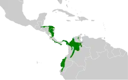 Der Vogel kommt von Guatemala über Zentralamerika und den Westen Südamerikas bis Peru vor.