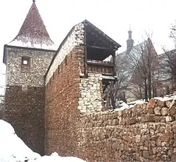 - rekonstruierte Teile der Stadtmauer, bestehend aus einem Wachturm und einem Wehrgang-Fragment;