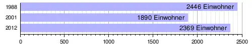 Im Hauptort lebten bei der Volkszählung 2012 2369 Einwohner in 386 Haushalten,[1] bei der Volkszählung 2001 1890 in 329 Haushalten[7] und bei der Volkszählung 1988 2446 in 435 Haushalten.[8]
