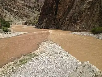 ![]() Mündung des Oltu Çayı (rechts) in den Çoruh (links) | ||