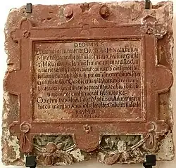 - ↑ Peterskirche: Grabplatte Olympia Morata. Website „Stadtspaziergang“ des Sonderforschungsbereichs „Materiale Textkulturen“, abgerufen am 21. Mai 2024.