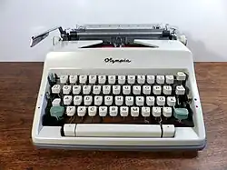 Die Olympia SM war eine Modellreihe von Schreibmaschinen des Wilhelmshavener Schreibmaschinenherstellers Olympia. Die Modellreihe wurde ab 1948 gebaut (erst ab 1949 unter dem Namen SM) und endete 1979 unter dieser Bezeichnung. Die Produktion von Nachfolgemodellen kam in den 1980er-Jahren mit dem Niedergang der mechanischen Typenhebelschreibmaschinen zum Erliegen.[1] Aufgrund der hohen Verbreitung der Maschinen dieser Modellreihe, zusammen mit der Büromaschinen-Reihe SG und der Reisemaschinen-Reihe SF, war Olympia einer der größten Schreibmaschinen-Produzenten der Welt.