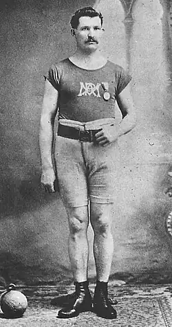Bronzemedaillengewinner James Mitchel – hier beim Hammerwurf im Jahre 1906, in St. Louis außerdem Fünfter im Hammerwurf und Sechster im Diskuswurf