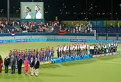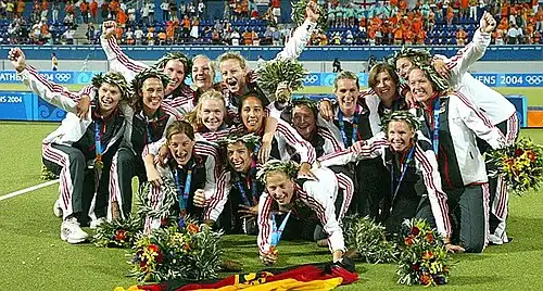 Das olympische Hockeyturnier 2004 gewann überraschend das deutsche Team gegen das favorisierte Team aus den Niederlanden. Mit zwei Toren in der 1. Halbzeit ging Deutschland mit 2:0 in Führung (Torschützen Anke Kühn, Franziska Gude). Der Niederlande gelang in der 2. Halbzeit nach einer Strafecke zwar noch der 1:2-Anschlusstreffer durch Maartje Scheepstra. Der Ausgleich, der eine Verlängerung bedeutet hätte, fiel jedoch nicht mehr. Mit dem Titel schrieben Deutschlands Hockeydamen zugleich Sportgeschichte, denn mit dem Sieg errang ein deutsches Damenteam erstmals eine Goldmedaille bei einem olympischen Hockeyturnier.[2] Bei den Olympischen Spielen von Barcelona 1992 unterlag Deutschland noch im Finale Spanien und errang die Silbermedaille.