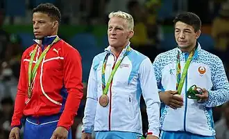 Ismael Borrero Molina , Stig André Berge und Elmurat Tasmuradov bei der Siegerehrung