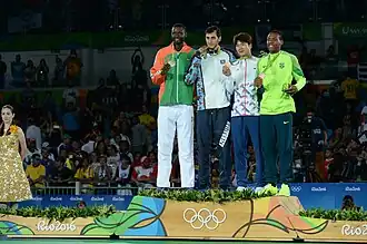 Anmerkung: PTG = Gewinner hat am Ende der zweiten Runde oder zu jedem Zeitpunkt in der dritten Runde einen Vorsprung von 12 Punkten erreicht, womit der Kampf endet (Point Gap); SUP = Sieg durch Überlegenheit (Superiority); GDP = Sieg in einer vierten Runde, im Sudden Death, in der die erste Wertung zählt (Golden Point; DSQ = Sieg durch eine Disqualifikation des Gegners)
