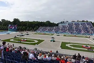 Der Mannschaftswettbewerb im Dressurreiten bei den Olympischen Spielen 2024 in Paris wurde am 30. Juli und 3. August im Park des Schloss Versailles ausgetragen.