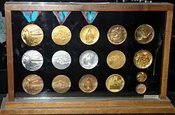 Der Sieger erhält eine Goldmedaille. Dabei handelt es sich um Silbermedaillen mit einem goldenen Überzug; das IOC schreibt vor, dass die Medaille zu mindestens 92,5 % aus Silber bestehen und sechs Gramm Gold enthalten sein müssen.[33] Der Zweitplatzierte erhält eine Medaille aus mindestens 92,5 % Silber, der Drittplatzierte eine aus Bronze. In einigen Wettbewerben, die im K.-o.-System ausgetragen werden (beispielsweise Boxen), werden beiden Halbfinalverlierern Bronzemedaillen überreicht.
