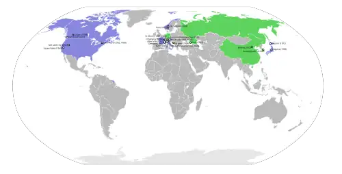 • Übersicht der Austragungsorte Olympischer Winterspiele (Legende siehe oben)