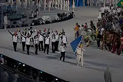 Die Alpin-Skirennläuferin Žana Novaković trug die Nationalflagge bei der Eröffnungsfeier.