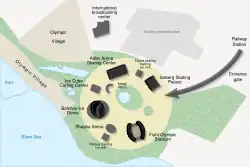 Die „Medal Plaza“ für die Siegerehrungen, das olympische Dorf und das Medienzentrum befinden sich auch im bzw. beim Olympiapark.