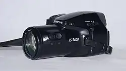 Neben Spiegelreflexkameras mit Wechselobjektiven entwickelte Olympus auch analoge Kleinbildkameras, sogenannte Bridgekameras in einer IS-Serie. Diese Olympus-Modelle tragen die Bezeichnung iS-1000 und iS-3000; letztgenannte Kamera wurde im Jahr 1992 auf den Markt gebracht. Dabei handelt es sich um Spiegelreflexkameras mit halb durchlässigem Spiegel, fest eingebautem Blitz und ebenfalls fest verbautem und in das Gehäuse integriertem Zoom-Objektiv. Die Objektive der beiden Kameramodelle weisen eine Lichtstärke von 1:4.5–5.6 und eine Brennweite von 35–180 mm auf, wobei diese Objektive allerdings im Gegensatz zu den meisten OM-Modellen über Autofokus verfügen.