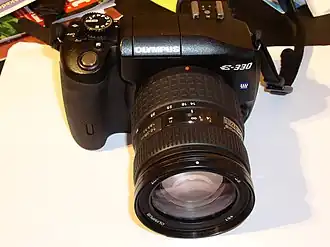 Die Olympus E-330 ist weltweit die erste digitale Spiegelreflexkamera (DSLR) auf dem Markt, die eine Nutzung von Wechselobjektiven erlaubt und dabei eine kontinuierliche Live-View-Anzeige auf dem klapp- und schwenkbarem Kameradisplay bietet, mit dem auch gezielte Selbstporträts aufgenommen werden können.[1]