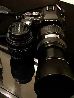 Die Olympus E-500 ist die dritte Kamera, die im von Olympus und Kodak entwickelten Four-Thirds-Standard gefertigt wurde.[1] Ihre Markteinführung erfolgte im November 2005. Diese digitale Spiegelreflexkamera verfügt über einen 8-Megapixel-Sensor. Da sie kompatibel zum von Olympus entwickelten E-System ist, steht für die Kamera eine Palette an Zuiko-Objektive zur Verfügung. Die E-500 hat einen 2,5 Zoll großen Monitor mit 215.250 Pixel und einen Ultraschall-Staubfilter (Supersonic Wave Filter), der Staubpartikel durch Ultraschall vom Bildsensor entfernt.