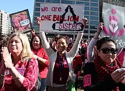 Weltweit wurden eine Milliarde (engl. billion) Frauen zu Streiks und Protestkundgebungen aufgerufen; indem sie ihre Häuser, Geschäfte und Arbeitsstellen verlassen und gemeinsam öffentlich tanzen, sollten sie ihre Solidarität und gemeinsame Kraft demonstrieren.[8] Das Ereignis sollte am 15. Jahrestag der V(agina)-Day-Aktionstage gegen Gewalt gegen Frauen (victory over violence) am 14. Februar 2013 (Valentinstag) stattfinden.[9] Die „Milliarde“ steht für die statistische Aussage der UN, dass ein Drittel aller Frauen und Mädchen in ihrem Leben Opfer von Gewalt werden.[10] Das Event findet seitdem jährlich am 14. Februar weltweit statt. Im Jahr 2014 stand die Kampagne unter dem Motto: Gerechtigkeit für Opfer von geschlechtsspezifischer Gewalt. Außerdem wurde die Betonung der Straflosigkeit, welche bei Straftaten gegen Arme, Opfer von Rassismus, Krieg und Imperialismus und die Plünderung der Umwelt weiterhin besteht, gelegt.[11]