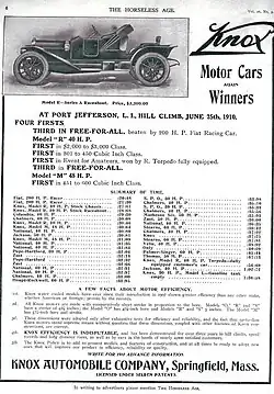 - ↑ The Automobile, Vol. XXII No 26: Knox Wins Feature Events at Port Jeff Hill.